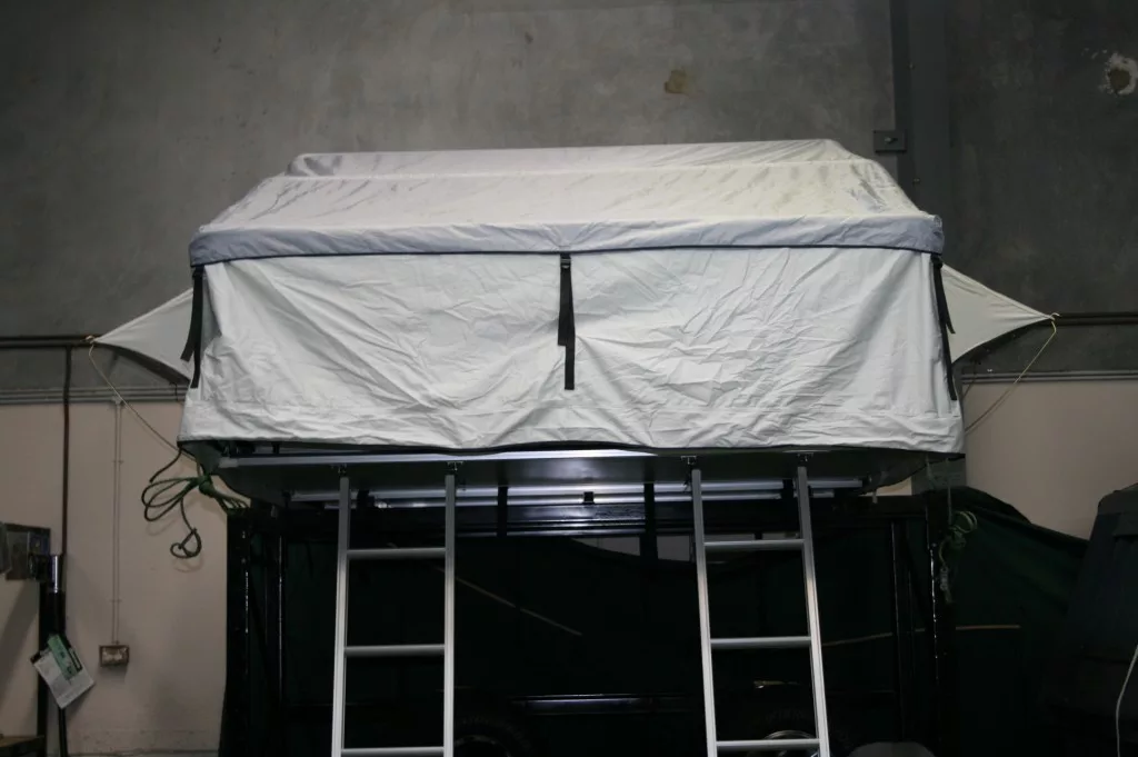 This is a top quality roof top tent, and is comparable to all of our canvas products representing excellent value for money. We offer a 12 months no fuss warranty on all our canvas products. We can offer excellent rates for delivery to all corners of Australia. If you have any questions, even suggestions, then please do not hesitate to contact us. If the opportunity arises, please call in at our Caboolture premises where we have one set up on display & also one on a vehicle. We have workshop facilities & can even supply roof bars to mount your tent on to, & then fit it for you.