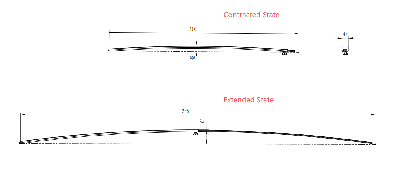 • Flexible Sizing: Collapses to 1.416m (L) x 0.042m (H) and extends to 2.651m (L) x 0.108m (H) for adaptable coverage.