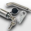 This is our more economical locking and securing pin that features a 304 stainless steel construction, a snap on rubber weatherproof cap to protect the insides of the lock, two keys and a securing clip. A dual-purpose pin that can be used through the body of any McHitch Drop-On coupling, as well as used through the drawbar on any square mouth receiver.