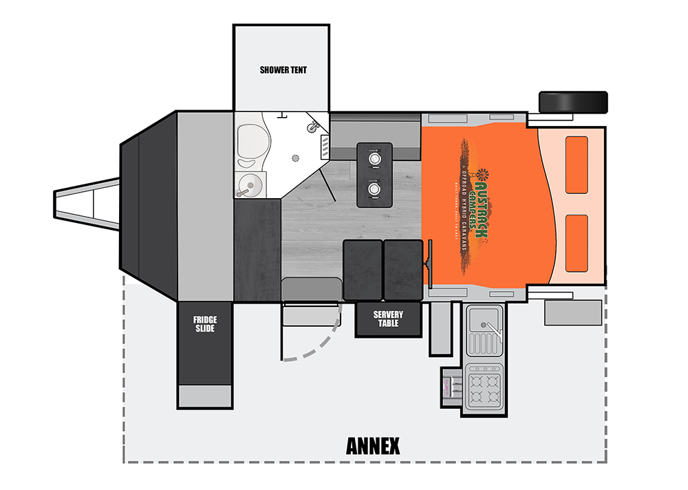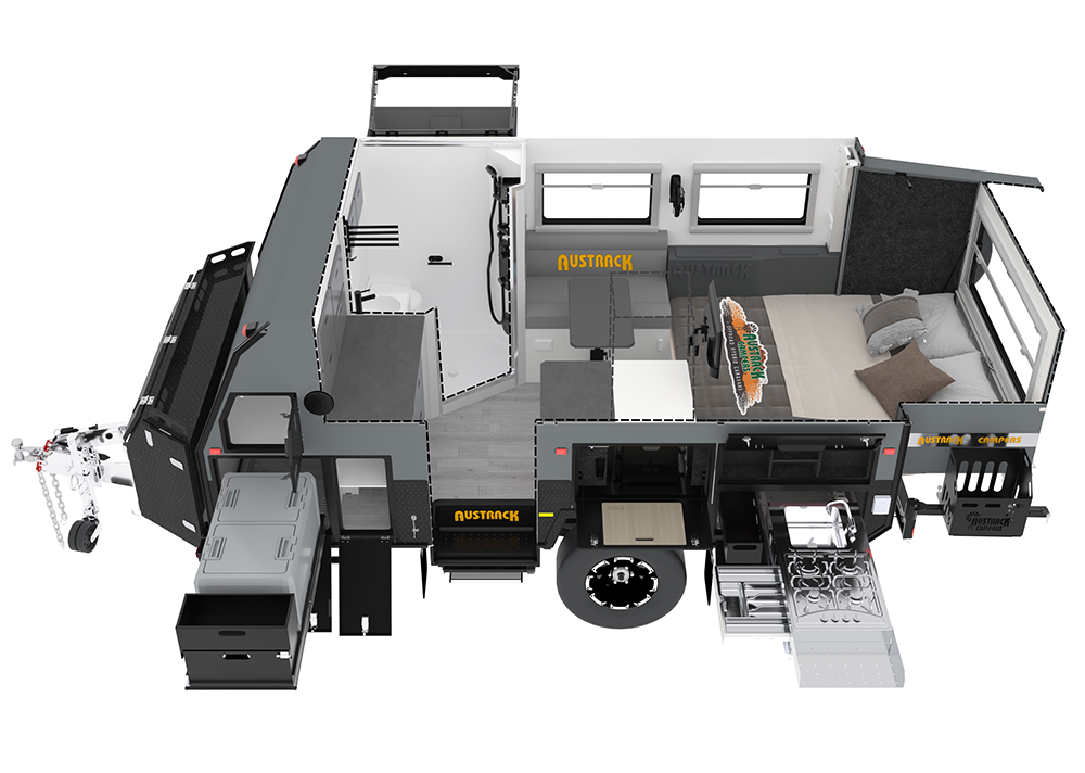 Austrack Campers reserves the right to modify an advertised component (eg. air conditioning unit, stove, inverter) with an item of similar value and quality, due to supply and availability. In order to fulfill orders, all Austrack Campers are subject to change at Austrack's discretion. Errors and omissions excepted.