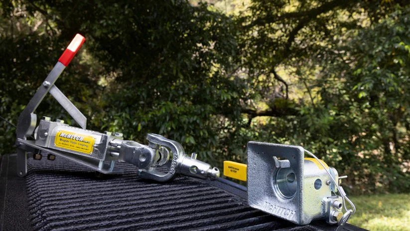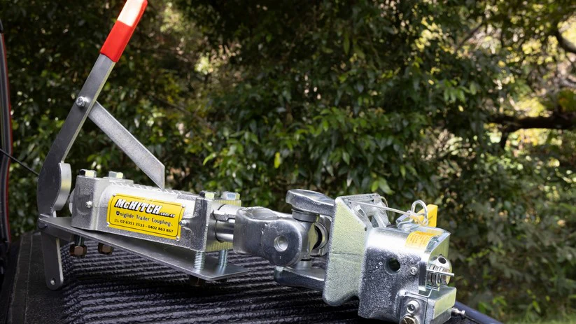 The McHitch 2000Kg Mechanical Override Auto Coupling is designed for trailers and caravans with an ATM up to 2000Kg. It uses a sliding shaft to transfer deceleration force to either a mechanical linkage or hydraulic cylinder, activating the braking system. Best suited for setups without load levelling devices and low ball weight. Includes a reversing collar to prevent brake engagement when backing up.