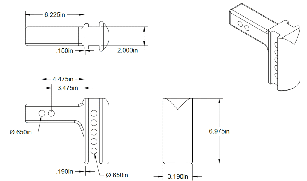 McHitch Adjustable Tow Tongue with McHitch Tow Pin and 50mm Ball Specifications
