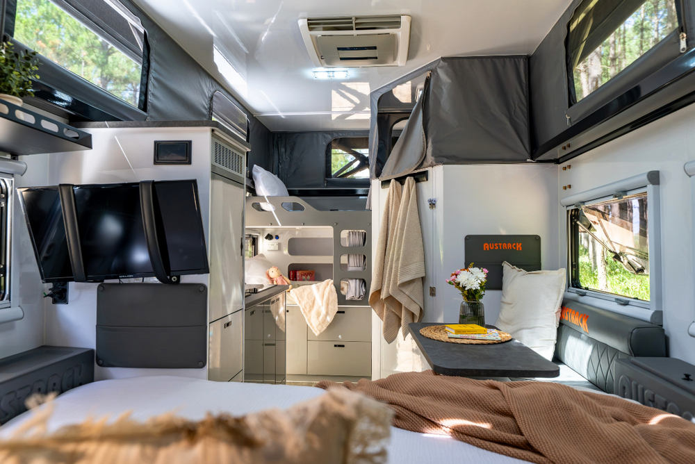Austrack Campers reserves the right to modify an advertised component (eg. air conditioning unit, stove, inverter) with an item of similar value and quality, due to supply and availability. In order to fulfill orders, all Austrack Campers are subject to change at Austrack's discretion. Errors and omissions excepted.