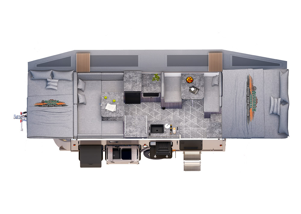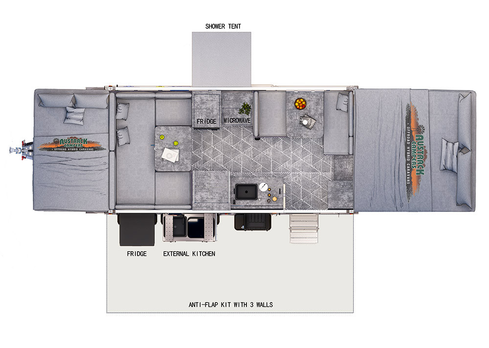 Austrack Campers reserves the right to modify an advertised component (eg. air conditioning unit, stove, inverter) with an item of similar value and quality, due to supply and availability. In order to fulfill orders, all Austrack Campers are subject to change at Austrack's discretion. Errors and omissions excepted.