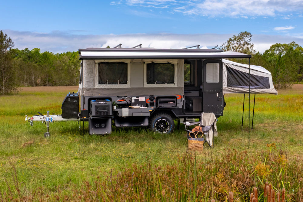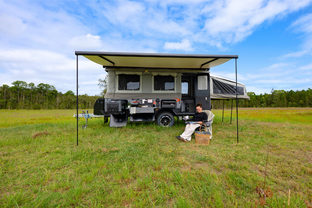 Equipped with a heavy-duty off-road dual-wheel swing-away jockey wheel, rated at 750kg, this set-up ensures effortless maneuverability and rock-solid stability when setting up camp