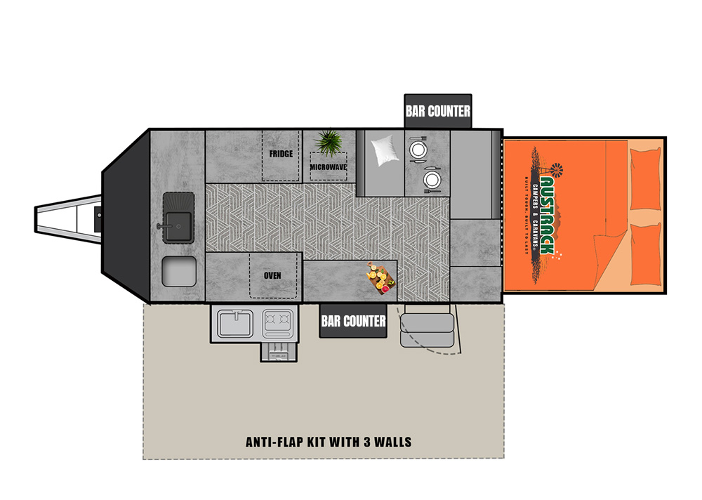 Austrack Campers reserves the right to modify an advertised component (eg. air conditioning unit, stove, inverter) with an item of similar value and quality, due to supply and availability. In order to fulfill orders, all Austrack Campers are subject to change at Austrack's discretion. Errors and omissions excepted.