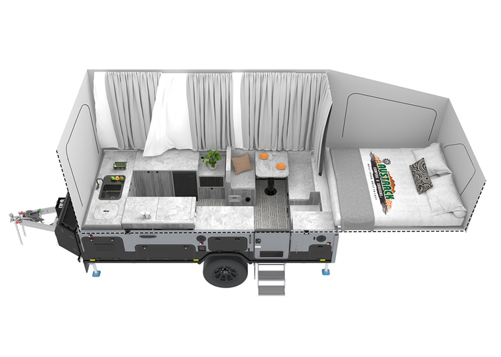 Smart solutions for every space! Featuring a large external toolbox, versatile tunnel boot and multiple compartments. Inside, enjoy seamless under-seat storage and a well-organised kitchen setup. Designed for maximum convenience and efficiency.