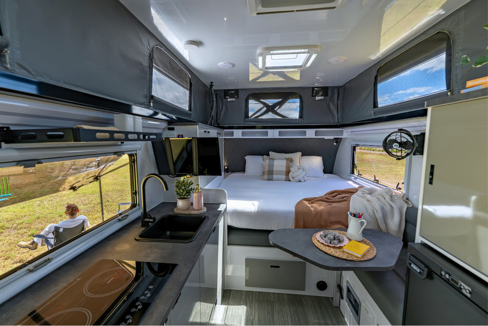 Effortless Setup: A push-button electric roof transforms the X16B into your home away from home.