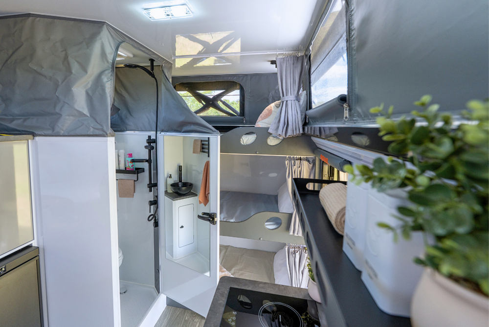 Effortless setup with an electric push-button roof, plus ample storage for all your camping essentials—complete with a spacious internal ensuite for ultimate comfort on every adventure.