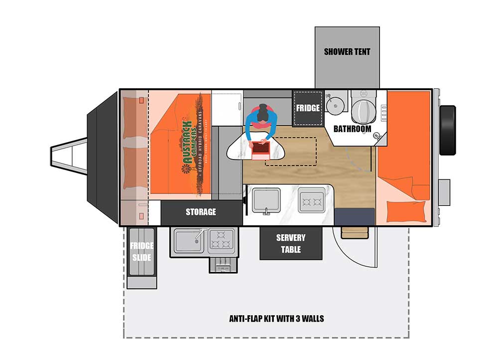 Austrack Campers reserves the right to modify an advertised component (eg. air conditioning unit, stove, inverter) with an item of similar value and quality, due to supply and availability. In order to fulfill orders, all Austrack Campers are subject to change at Austrack's discretion. Errors and omissions excepted.