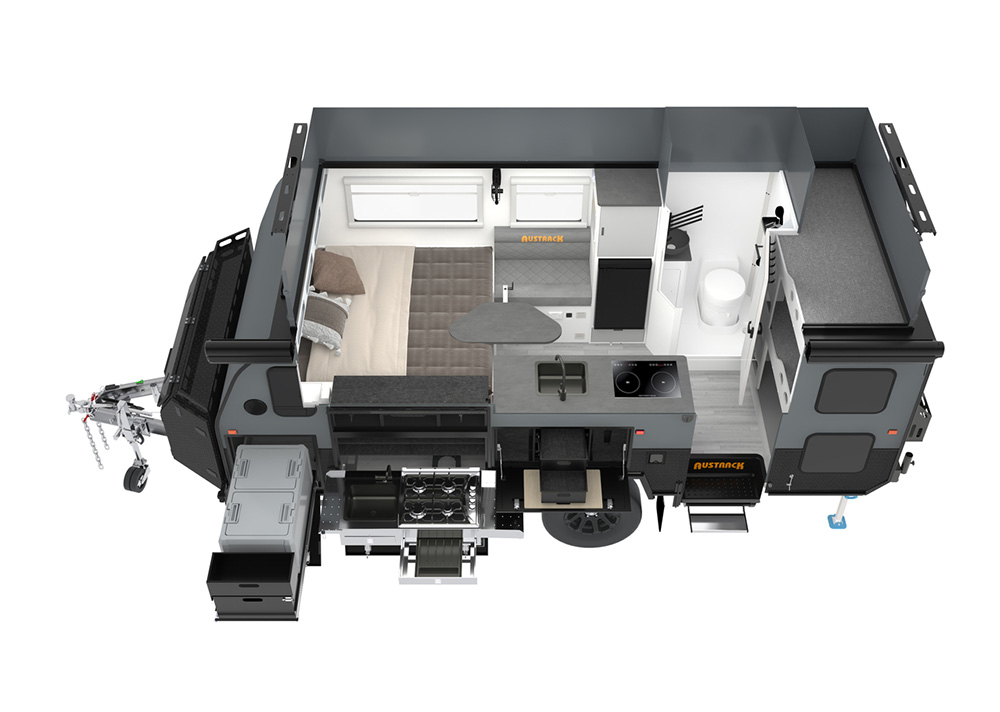 Austrack Campers reserves the right to modify an advertised component (eg. air conditioning unit, stove, inverter) with an item of similar value and quality, due to supply and availability.  In order to fulfill orders, all Austrack Campers are subject to change at Austrack's discretion. Errors and omissions excepted.